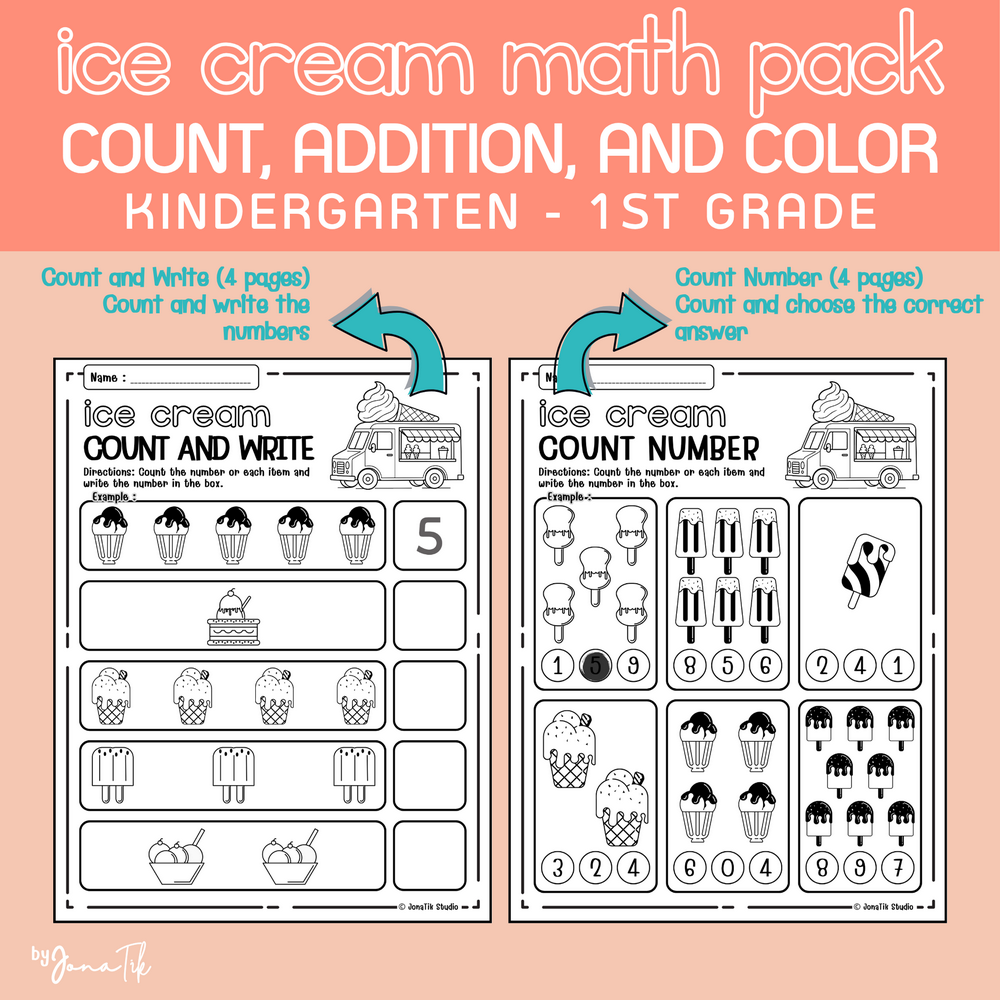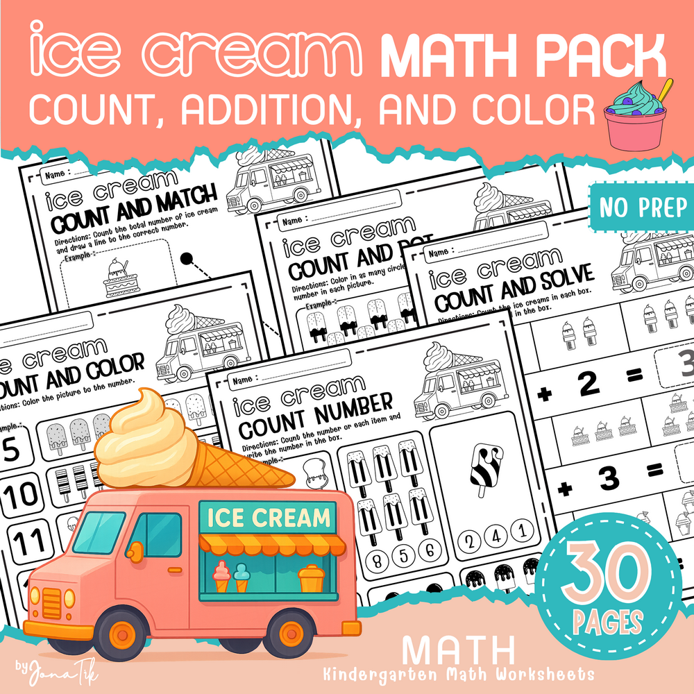 Ice Cream Math Pack: Count, Add, and Color! | Summer Math Worksheets for Kids